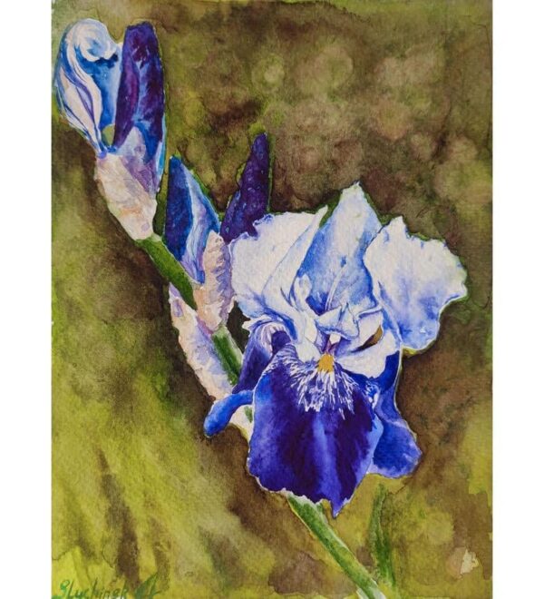 Iris Painting is Original 100% hand-painted watercolor artwork one of a kind by Kate Sluchinska. This is not a copy or print or watercolor from photo art.